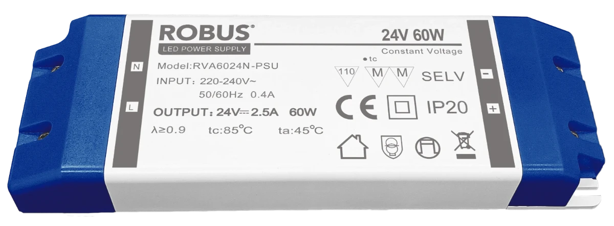 - VEGAS 60W, 24V, IP20 constant voltage driver, non dimmable